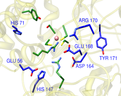 The multilayer active site, computationally predicted and experimentally verified, for Co-type nitrile hydratase [3] *My collaborators and I have promoted the concept of the important role of distal residues in enzyme catalysis. My theories predict whether an enzyme has a compact or spatially extended active site and my experimental collaborators test these predictions. These residues have been shown to make significant contributions to catalysis [3-6]; most importantly, the specific residues that do contribute to the biochemical function are predictable with a simple calculation. Although distal residues have been largely neglected in biochemical studies, understanding their roles is critically important in enzyme engineering. *